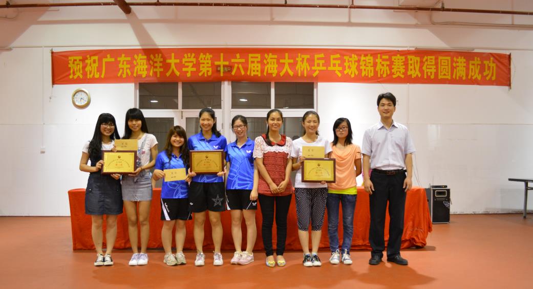 经过四天紧张激烈的比赛,第十六届“海大杯”乒乓球锦标赛于4月27日下午胜利闭幕。水产学院、工程学院、信息学院分获男子团体前三名,食品科技学院、信息学院、文学院分获女子团体前三名;邓裕坚、纪立、苏越和杨兴达分获男子单打前四名,女子单打前四名则由沈翌星、李巧清、张艺三和江梓瑛获得。