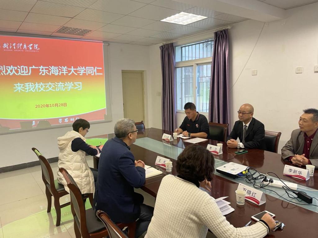 曹卫院长介绍了学校的基本情况以及学院申硕工作情况;武汉体育学院学科建设办公室红教授对我院的体育申硕工作进行了具体指导并提出建议;双方就体育研究生联合培养工作进行了深入的探讨。