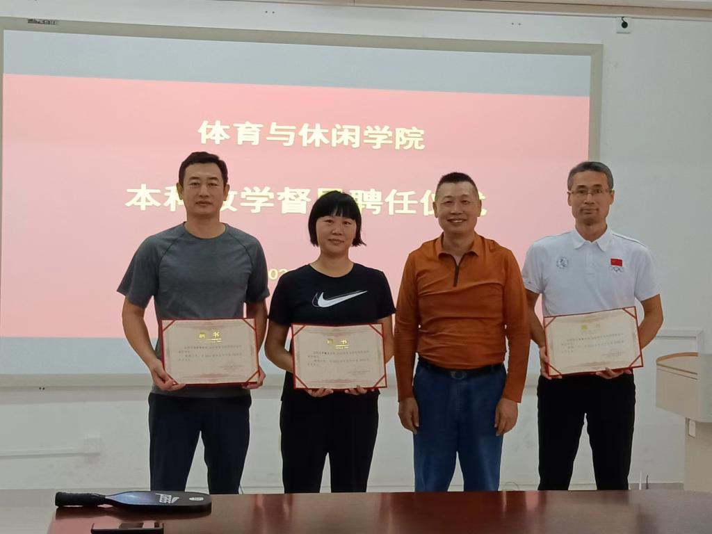 在体育馆会议室举行第一届本科教学督导聘任仪式。学院党委书记李新华、副院长苏雄、副书记蔡法、副院长施俊华、办公室杨建梅主任、学校督导组成员郭炎林副教授及学院督导组成员王凤春(兼组长)、刘培华副教授、罗曦光副教授和部分专业负责人参加仪式。仪式由施俊华主持。