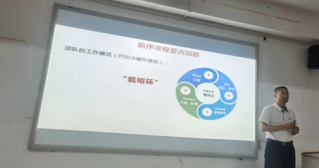 今年学院教学公开课由获得学校教学质量优秀奖的王凤春老师讲授。课堂上王凤春老师首先进行了10分钟的说课环节,总体简要介绍了《拓展运动》公共体育课的总体课程目标包含知识与能力目标、课程设计思路与实施办法、课程效果评价等内容。接着进行了授课环节,主要是课程要点展示,其中着重引入了“戴明环”的教学理念非常契合现代先进教学方式方法。