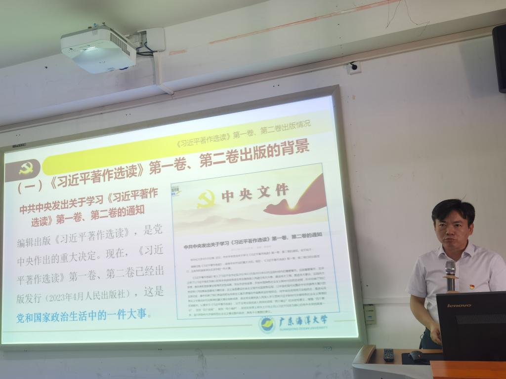 曹望华详细讲解了《习近平著作选读》第一卷、第二卷出版的背景与意义、主要内容、学习要求与方法,解读了习近平总书记在广东考察时的重要讲话精神。报告主题鲜明、内容详尽、深入浅出,为学院教职工接下来学习《习近平著作选读》更加深入、把握更加系统、理解更加深刻提供了有力的支撑。