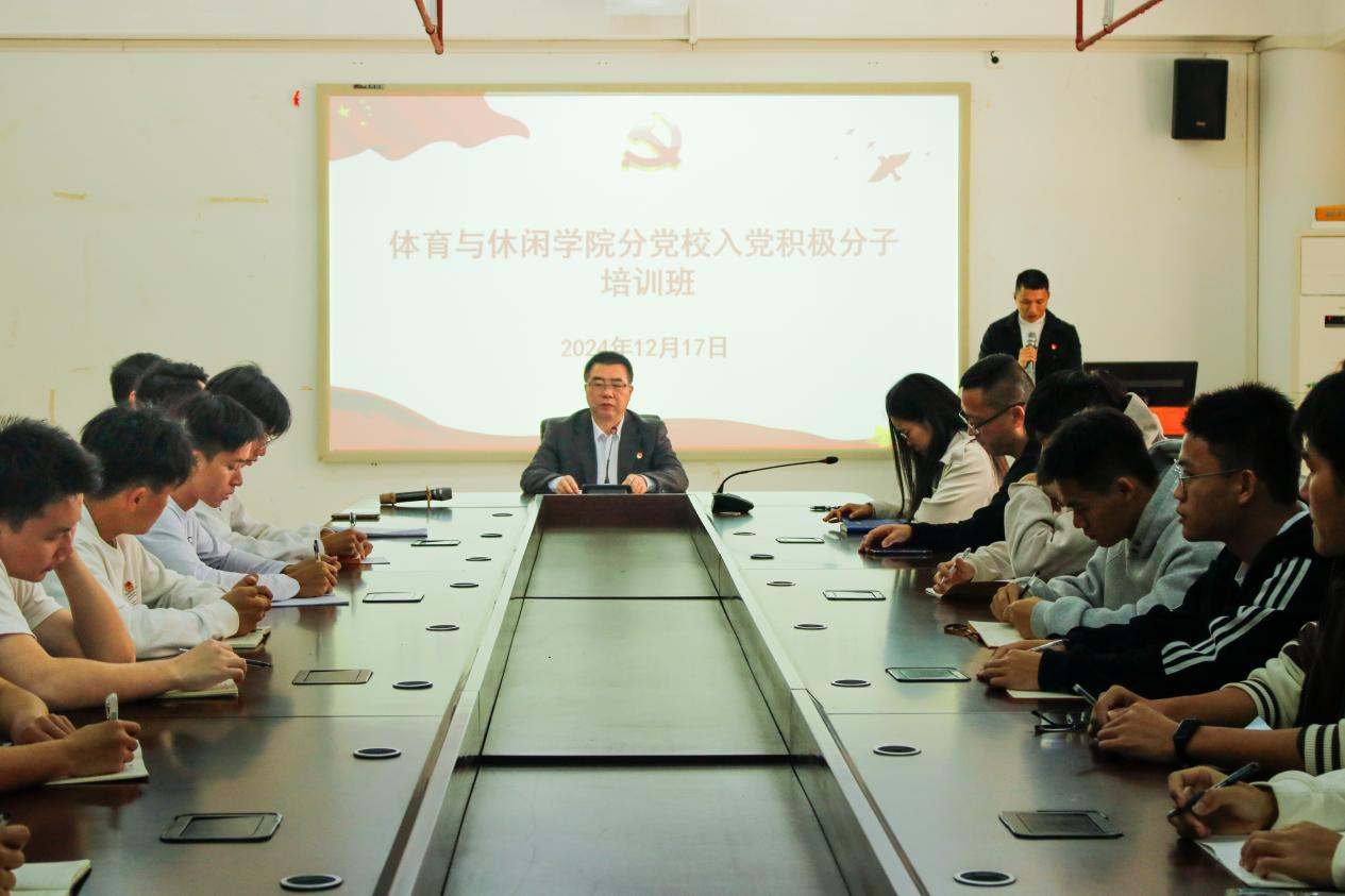 在体育馆会议室举行了2024年第一期入党积极分子开班仪式并开展开班第一课,旨在严格把好党员发展的入口关卡,提高入党积极分子的政治素养和理论水平。学院党委书记王明对、副书记谭斌、辅导员杨颖姑、学生党支部书记黄岳钦及学院团委书记张程锦和37名学员出席了此次活动,开班仪式及第一课由黄岳钦老师主持。