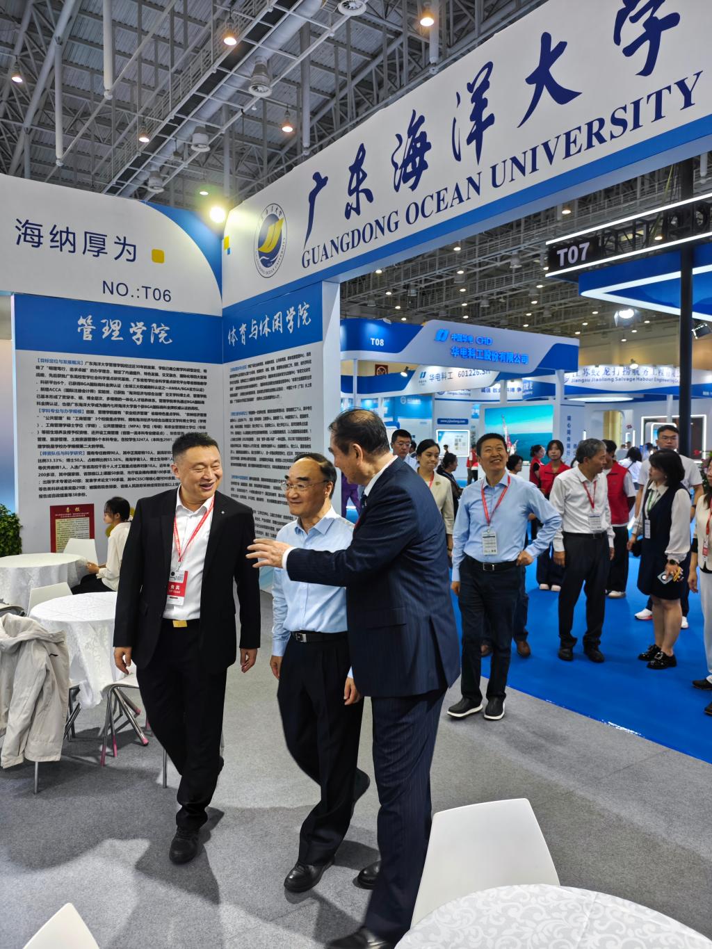 展会期间,在学校展位前,鲁义善向莅临参观的交通运输部原党组副书记、副部长,第十三届全国人大常委会委员翁孟勇汇报了学校依托临海优势,在滨海体育、潜水科学与工程、海上救生等领域的学科建设、人才培养及科研成果转化方面取得的突出成就。翁孟勇同志认真听取了介绍,并对学校在服务海洋强国战略、推动潜水技术与海洋经济发展方面做出的积极探索和贡献给予了充分肯定。