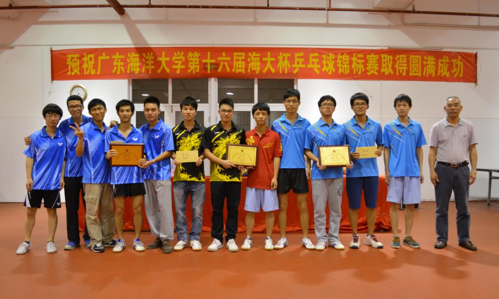 经过四天紧张激烈的比赛,第十六届“海大杯”乒乓球锦标赛于4月27日下午胜利闭幕。水产学院、工程学院、信息学院分获男子团体前三名,食品科技学院、信息学院、文学院分获女子团体前三名;邓裕坚、纪立、苏越和杨兴达分获男子单打前四名,女子单打前四名则由沈翌星、李巧清、张艺三和江梓瑛获得。