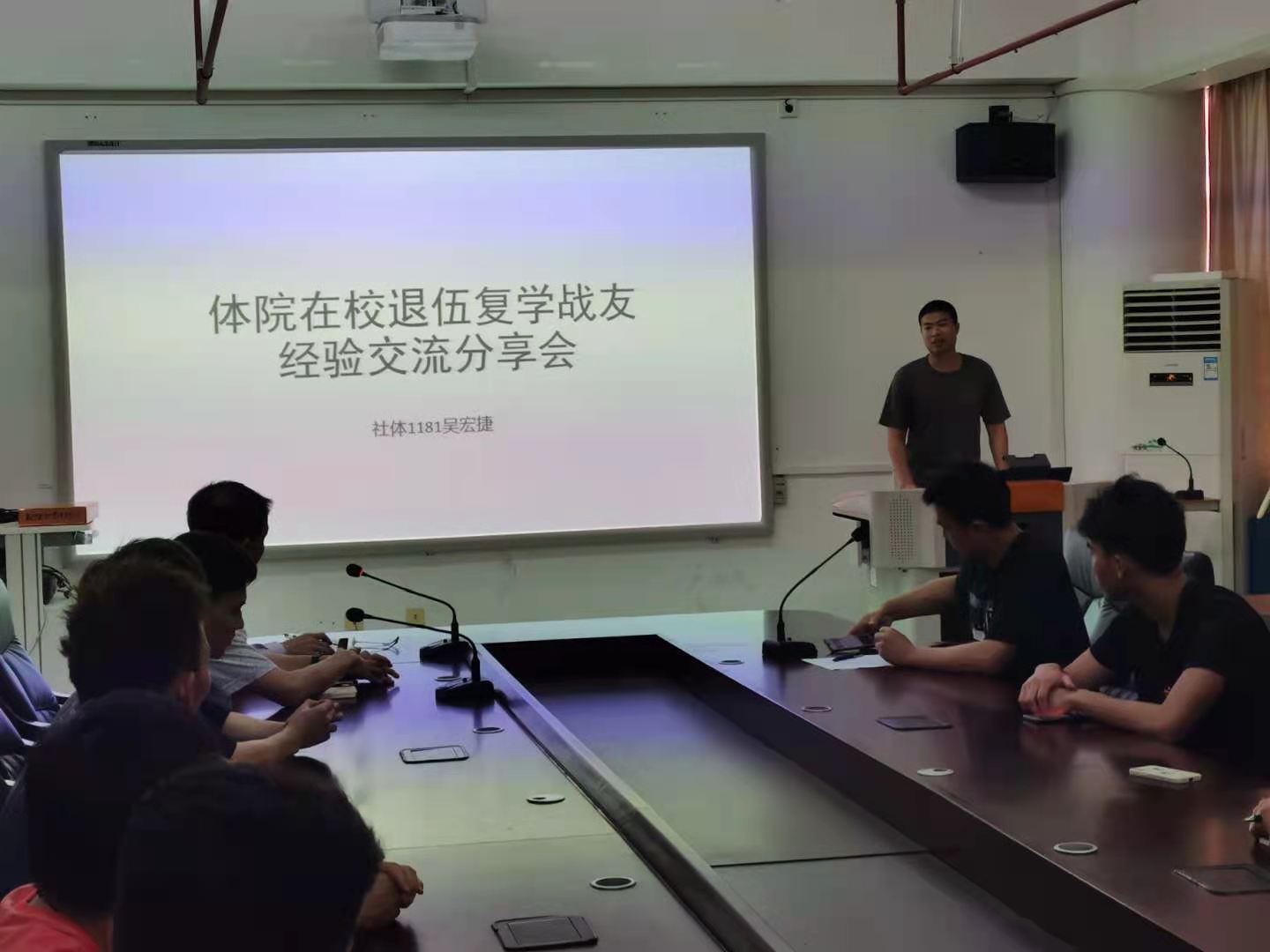 会议开始后,退伍复学代表吴宏捷同学为大家分享了作为一名大学生,要如何让自己的大学生活过的更加充实和有意义,还为今后如何向考研、考公、创业、择业这四个方向发展做出了详细的解析,让同学们充分了解自己作为体育生和退伍军人的优势和存在短板,为同学们确定今后的目标作了很好的启发。