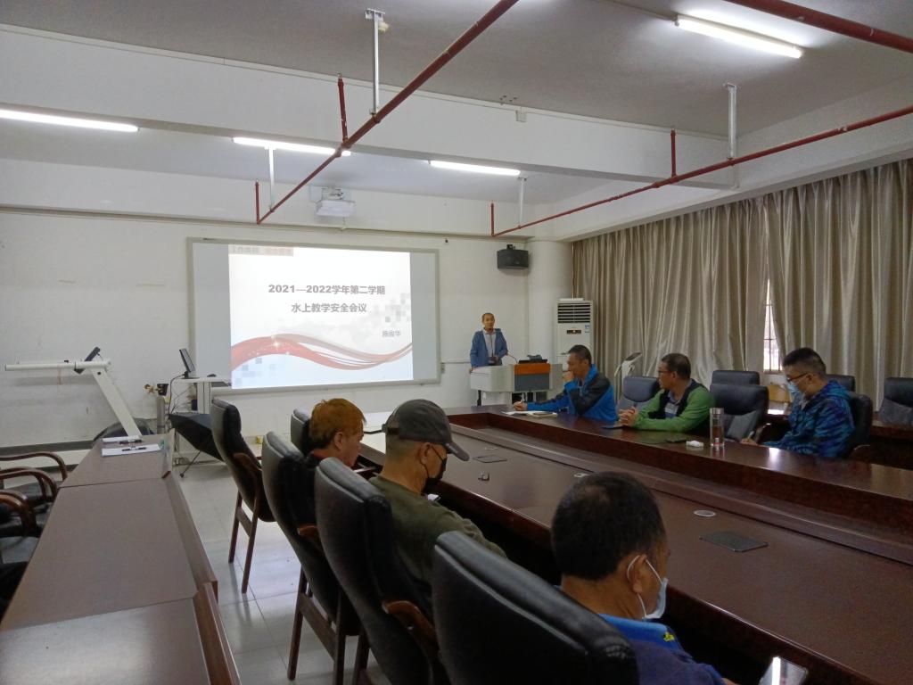 在湖光校区体育馆会议室召开水上课程安全教育现场会议。学院领导班子成员、副科级以上干部、水上课程全体任课老师、场地管理人员、教师救生员共16人参加会议。