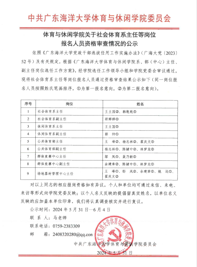 巴卡漫画 关于社会体育系主任等岗位报名人员资格审查情况的公示