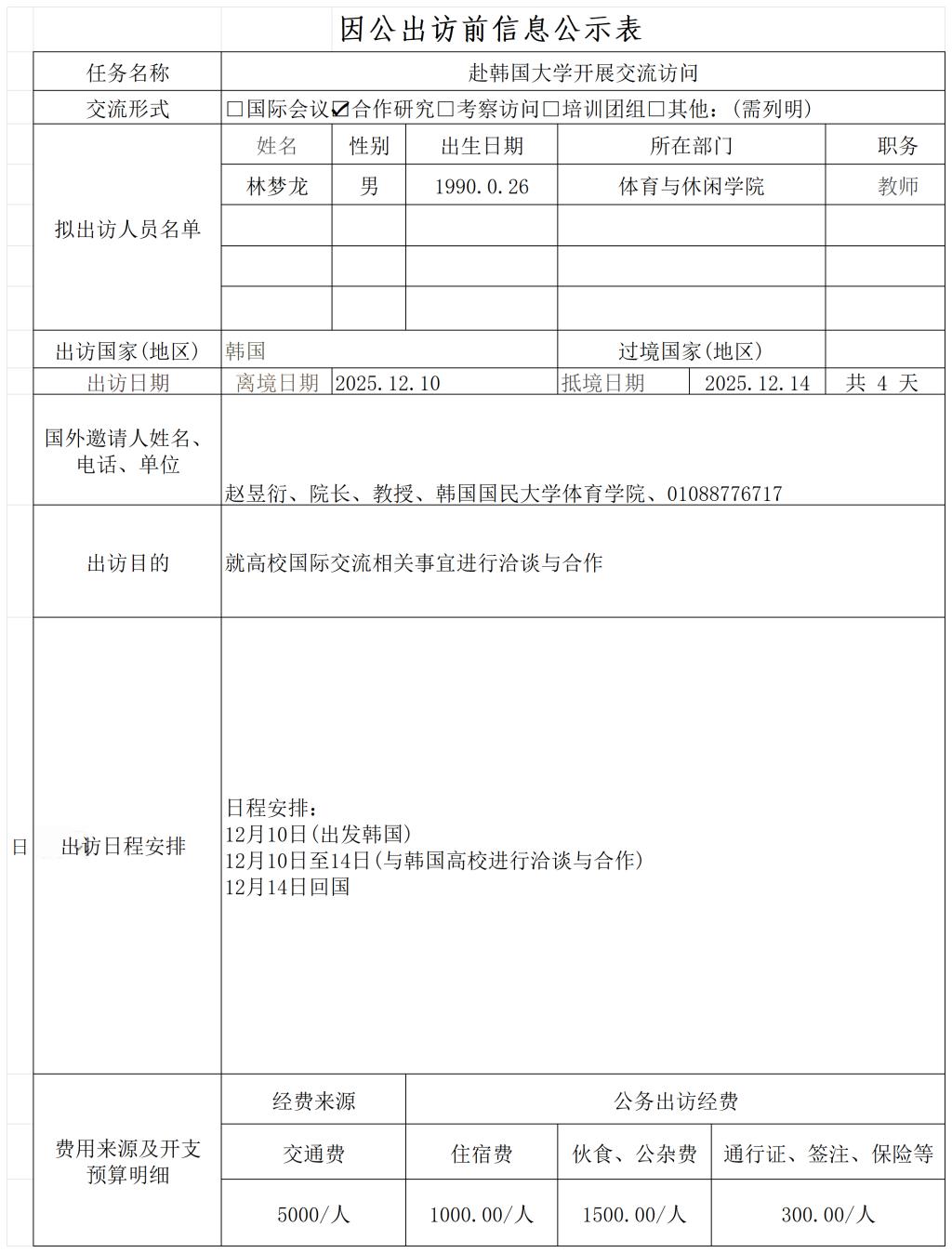 因公出访前信息公示表-韩国