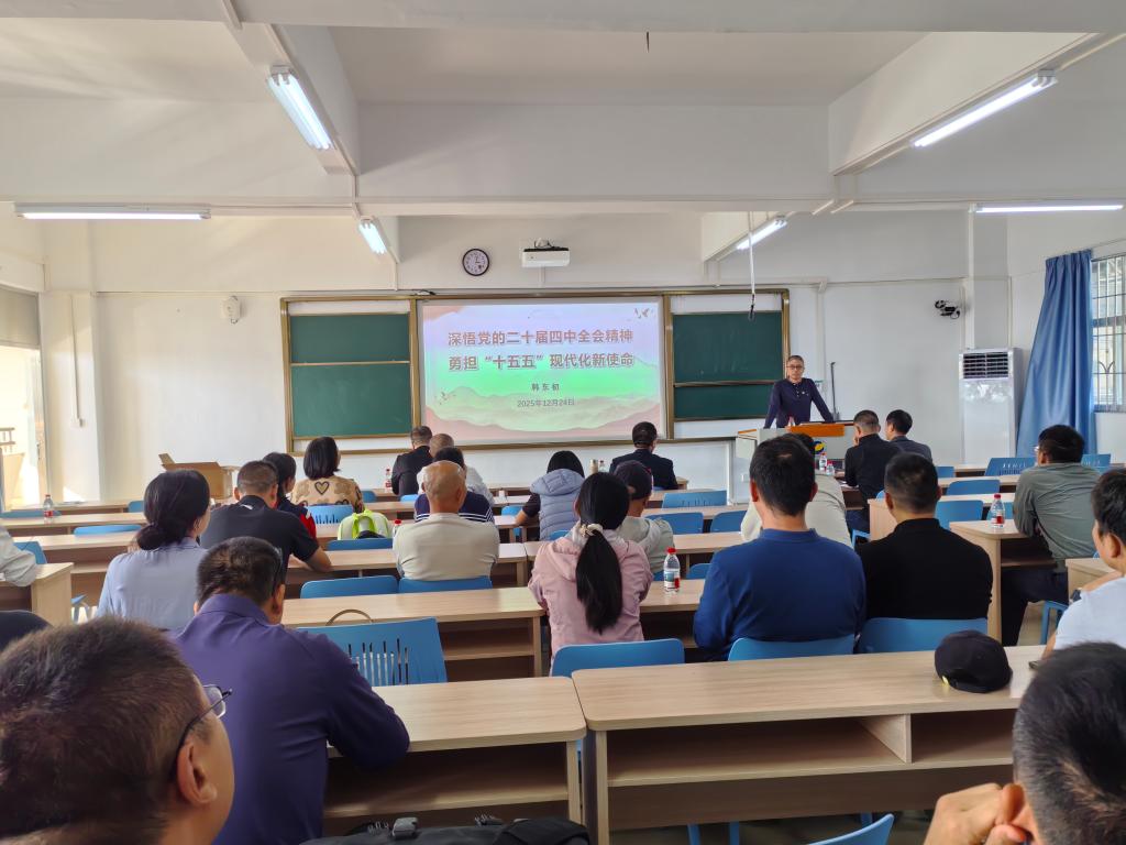 会上,韩东初以《深悟党的二十届四中全会精神,勇担“十五五”现代化新使命》为主题,围绕党的二十届四中全会的重大意义、“十五五”时期的重要地位、经济社会发展的指导方针和主要目标、战略任务和重大举措以及坚持和加强党的全面领导等方面,对党的二十届四中全会精神进行了深入解读和阐释。